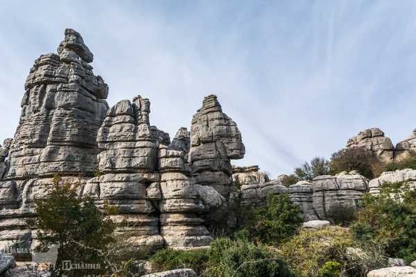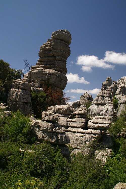 Давным-давно, а точнее, в эпоху Юрского периода 160 миллионов лет назад на этом месте плескалось море, но позже сдвиги земной горы подняли известняковое дно на высоту почти 1400 метров. Долгие миллионы лет эрозия, ветер и дождь трудились над созданием причудливых образов, сегодня населяющих парк. Людское воображение довершило работу и среди нагромождения камней и скал можно различить верблюда, сфинкса, огромный винт, кувшин… Удивительный ландшафт дополняют каменные «грибы» и образования, имеющие многослойную структуру, будто заботливо сложенная неведомой рукой «пирамидка». Здесь же находятся несколько пещер, представляющих научный интерес, где обнаружены следы доисторического человека. Кстати, это один из самых первых природных парков Андалусии – территория была объявлена охраняемой еще в 1929 году.