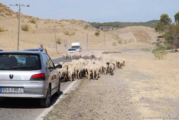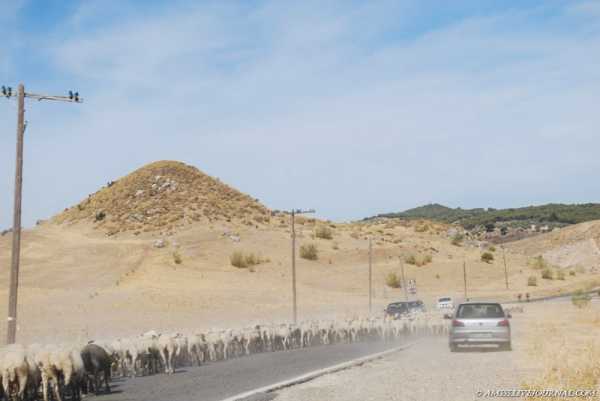 На обратном пути попали вот на такую картину. Звон колокольчиков и громнейшее стадо овец пересекало дорогу откуда-то из за холма. Они двигались как-то цепочкой и, казалось, ей нет конца. Пришлось потихоньку «прорываться» сквозь эту цепочку.