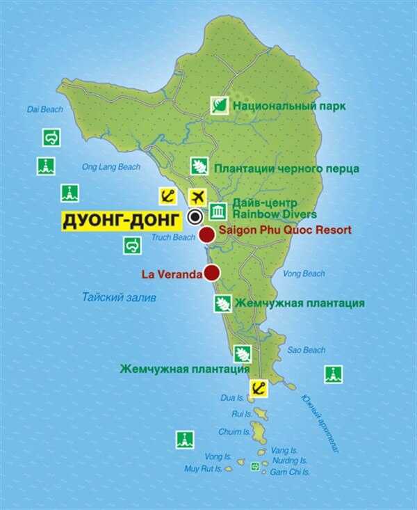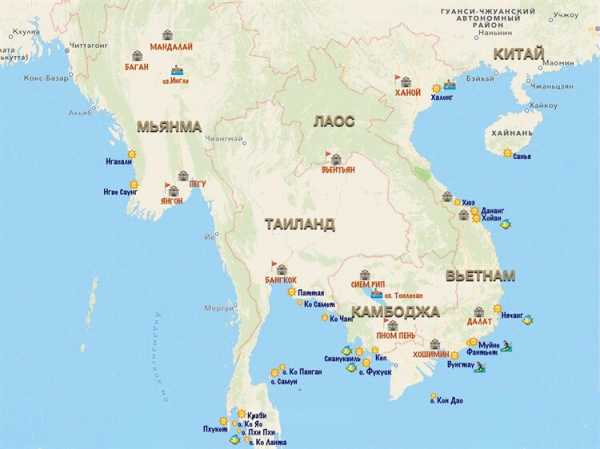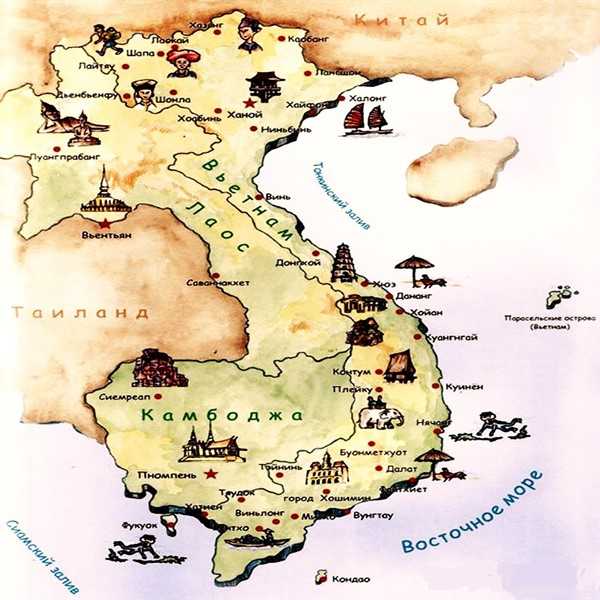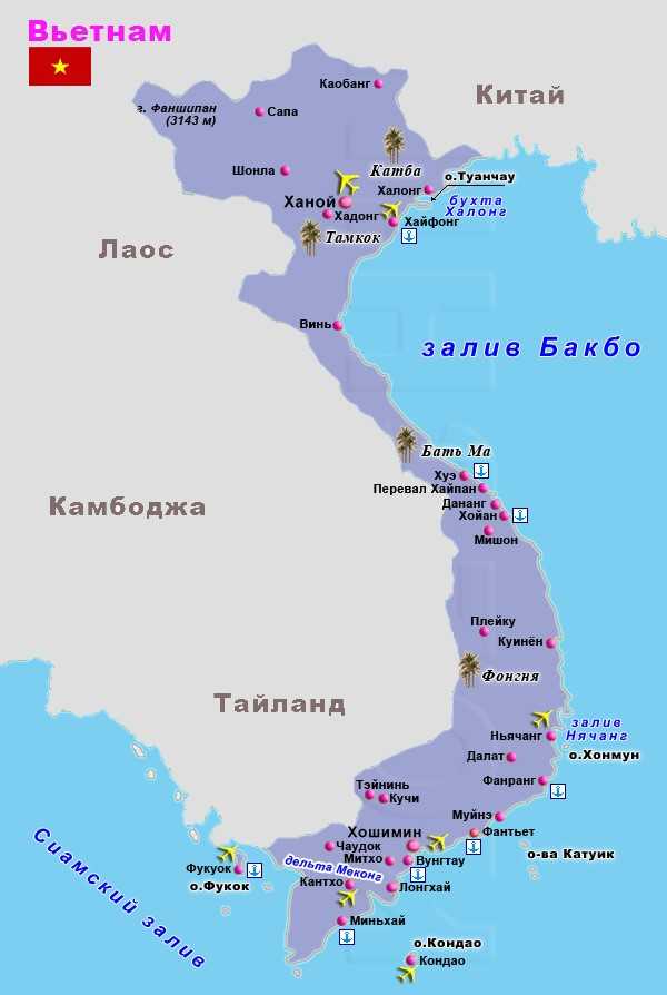 Карта Вьетнама: русская карта с отелями, Нячанг, Фантьет, Фукуок и другие курорты