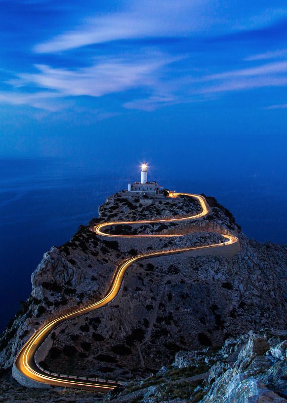 Спрятанная в самой северной точке Балеарского острова Майорка дорога к маяку, также известному как Маяк Кап-де-Форментор, потрясающая. Он называется MA2210. Он полностью вымощен. Длина дороги, начинающейся в Платжа-де-Форментор, составляет 10,9 км (6,77 миль). Маяк, настоящий строительный подвиг, учитывая крутую местность, имеет бар и магазин.