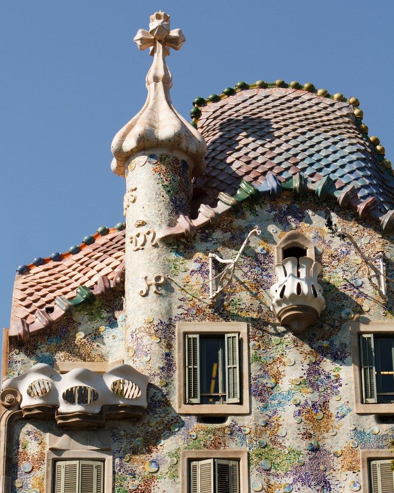 Мозаика также отражает свет и добавляет цвет. Снаружи мозаичная плитка Casa Batlló имеет волнообразный рисунок, имитирующий океан.