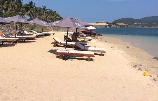 - Аренда двух лежаков под зонтом – 150 000 донгов возле отеля и 80 000 донгов на «вьетнамской» части пляжа возле кафе