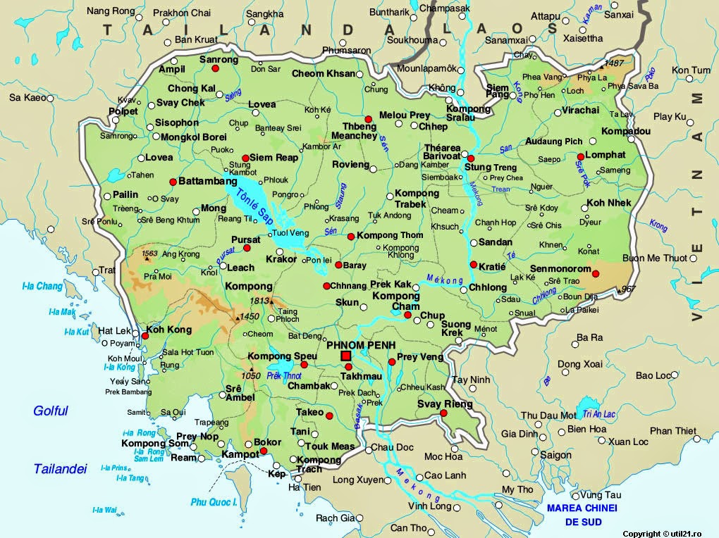 Камбоджа — страна в южной части Юго-Восточной Азии, граничащая с тремя другими странами: Таиландом (на северо-западе), Лаосом (на северо-востоке) и Вьетнамом (на востоке и юге). Две реки: Тонлесап и Меконг пересекают всю страну с севера на юг и встречаются в столице Пномпене.