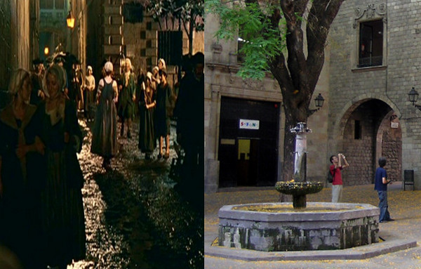 В Фигерасе это Замок Сан Ферран (Castillo de Sant Ferran) как ворота в Париж, а в Барселоне – Готический квартал (Barrio Gótico de Barcelona) и площадь Св. Филлипа Нери (Plaza de Sant Felip Neri). Также одна из сцен «Парфюмера» ( оргия на площади) снималась в Poble Espanyol.