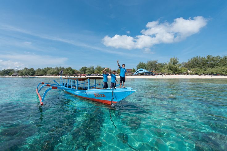 Как только вы сойдете с парома на Гили Траванган, вас сразу же встретят кристально голубая вода и пляжи с белым песком.