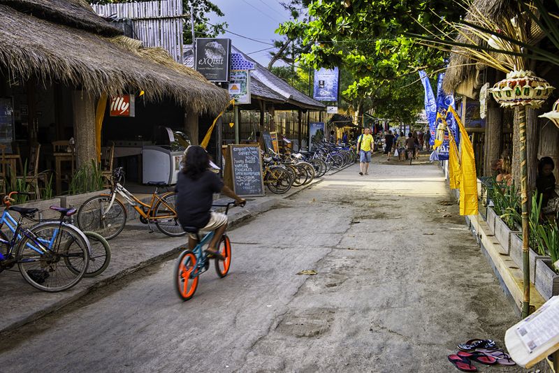 Вы можете арендовать велосипеды примерно за 40 000 IDR в день со всего острова, и вы увидите множество туристов, которые передвигаются на двух колесах, чтобы исследовать все, что можно увидеть на Гили Т.