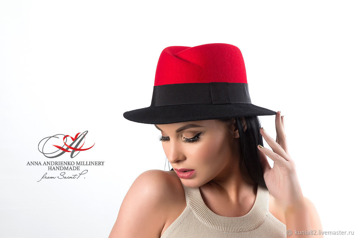 головной убор — круглая шляпа, украшенная перьями.