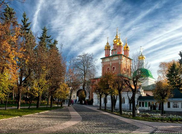 Троицкий монастырь Св.Сергия (Троице-Сергиева Лавра) — это место для начала. Сергий Радонежский основал монастырь в 1345 году, и он приобрел репутацию источника русской военной и духовной силы после того, как его благословение, как считалось, вдохновило на победу в одном из самых важных сражений в истории России против монгольских татар на Куликовом поле в 1380 году.