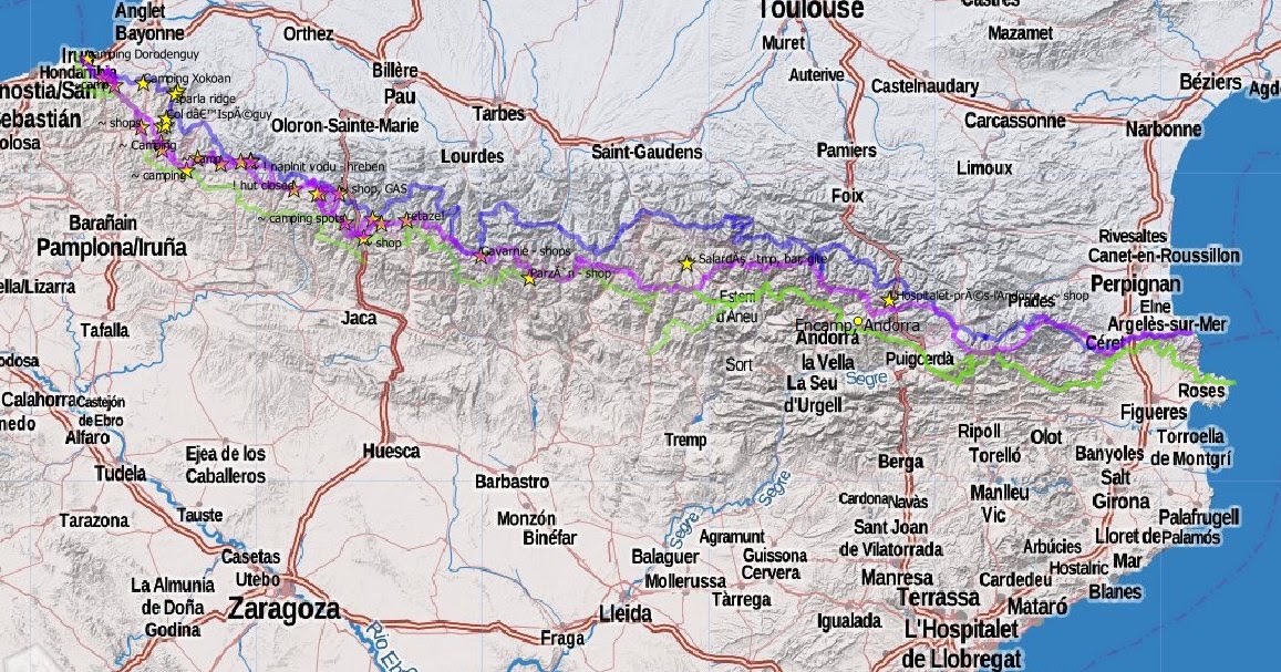 В Пиренеях проложено множество пеших и конных маршрутов, бегущих от городка к городку, от замка к курорту, через самые живописные места национального парка Пирене, плато Люшон и Сердань, а также по зеленым предгорьям. Горы открываются обычно с середины июня до конца сентября, и хотя толстый снежный покров здесь редкость, путешествовать зимой в этих краях не рекомендуется — погода очень переменчива, а места пустынны.