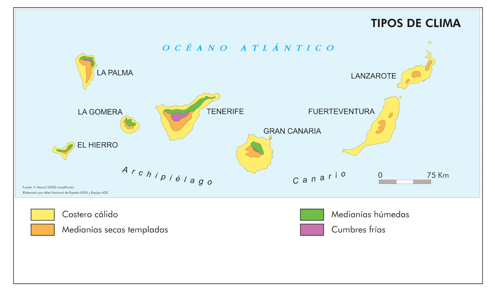 Следующие поля отображаются для Гран-Канария климатические средние: