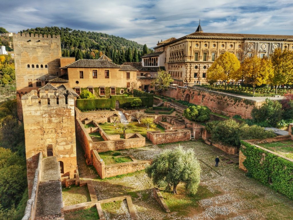 В 1237 году основатель династии Наридов Муххамед I аль-Галиб завоевал Гранаду и первым делом построил здесь оборонительную крепость — Алькасабу. По иронии судьбы, спустя два с половиной века со Сторожевой башни (Torre de la Vela) — самой высокой башни крепости, христианские войска провозгласили завершение Реконкисты. Ещё спустя полвека «новые хозяева» начали строительство своего дворца и без иронии здесь, судя по всему, также не обошлось. Являясь одновременно и шедевром испанского ренессанса, и преступлением против мавританского искусства дворец Карла V так и не был достроен.