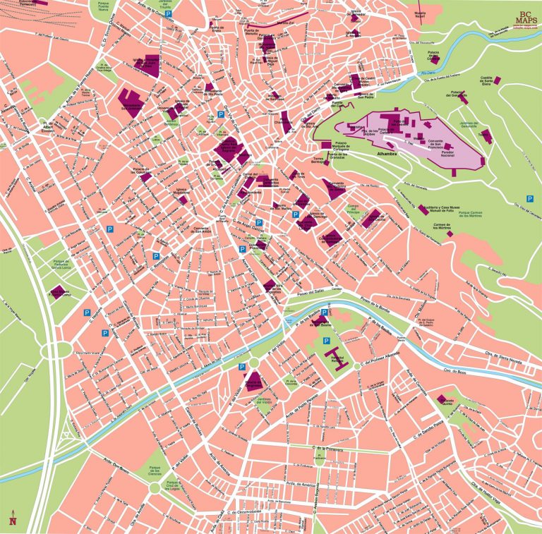Альгамбра (Алькасаба, Дворцы Насридов и Хенералифе), Кафедральный собор, Королевская часовня, Монастырь Картуха, Монастырь Сан-Херонимо, Музей научного парка, Каса-де-Сафра, Куарто-Реаль, Аббатство Сакромонте, Музей Каса-де-лос-Тирос, Музей изящных искусств и Археологический музей