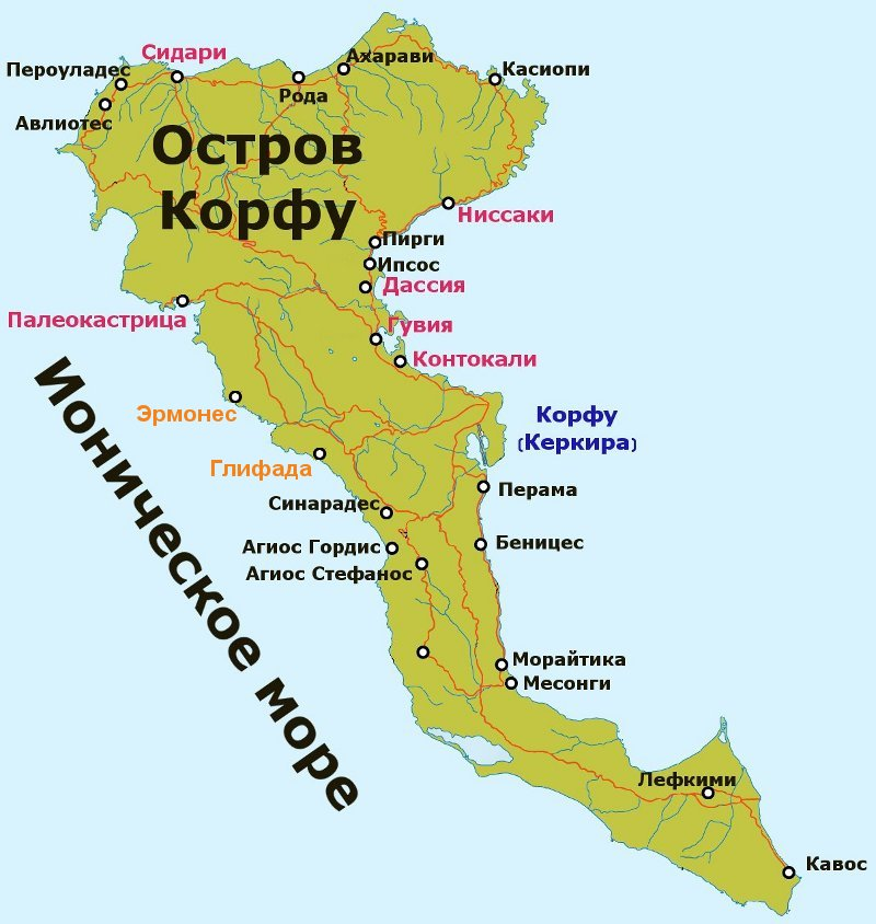 Греция (Халкидики) Кассандра Карта подробная на русском языке.