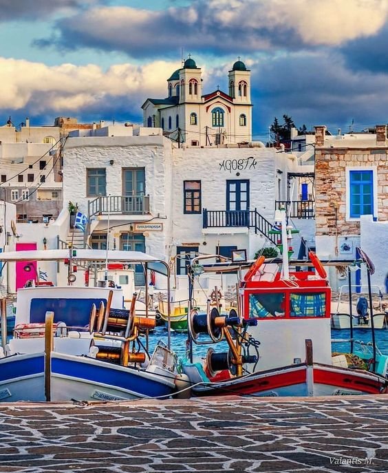 Парикия — это коммерческий и деловой центр острова Парос, Греция, с океаном и портом на одной стороне города и ресторанами, прачечными автоматами, супермаркетами, туристическими агентствами, маникюрными салонами и т. Д. На другой стороне. дороги.
