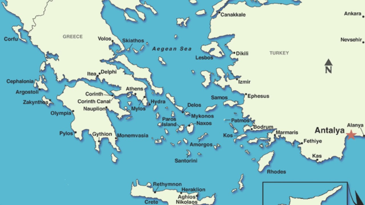 Это красочная точка на карте в Эгейском море, которая выделяется своей уникальностью.