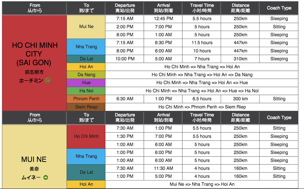 Последний автобус из Хошимина в Нячанг отправляется в 21:30.