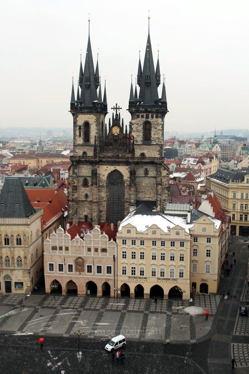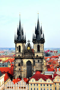 Дева Мария перед Тыном. Пражские храмы— Он не просто готический. Заложен в 1365 году на месте двух стоявших здесь ранее, один из них был романский. Из-за своих башен, наверно, самый знаменитый и самый узнаваемый. 80-ти метровые башни появились только на рубеже XV и XVI веков.