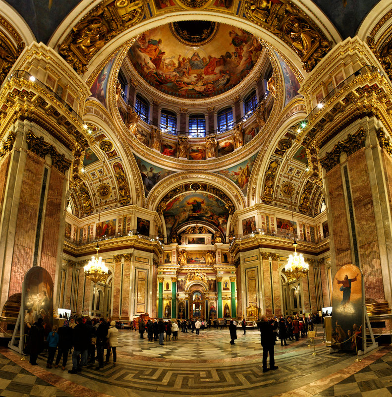 В интерьере соединены мотивы итальянского Ренессанса, барокко и ампира – особое очарование Исаакиевского собора.