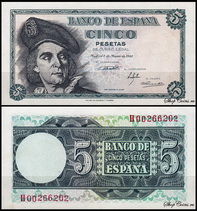 Банкнота номиналом 5 песет Испании, 1935 г.