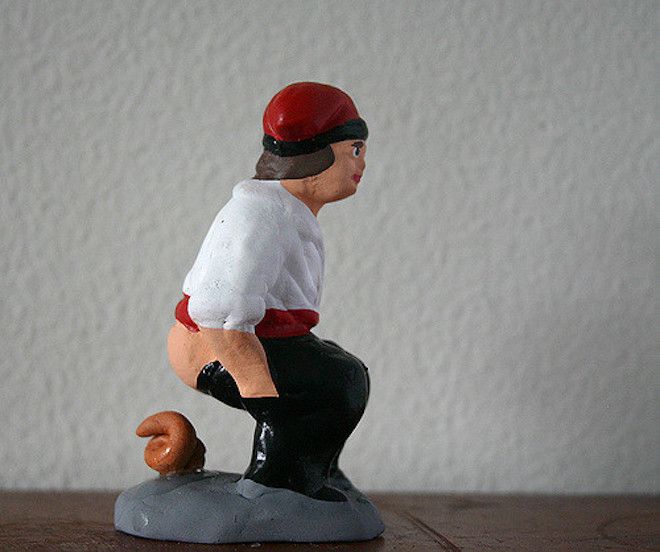 Если вы оказались в эти декабрьские дни в Каталонии, то среди традиционных персонажей сцены Рождества Христова вы неожиданно обнаружите маленькую фигурку крестьянина, спустившего штаны и справляющего большую нужду — прямо рядом со святыми персонажами.