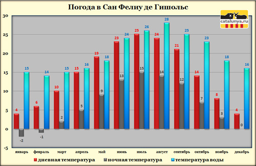 | день | 12 ° С | 12 ° С | 15 ° С | 17 ° С | 20 ° С | 24 ° С | 26 ° С | 27 ° С | 24 ° С | 21 ° С | 16 ° С | 14 ° C |
