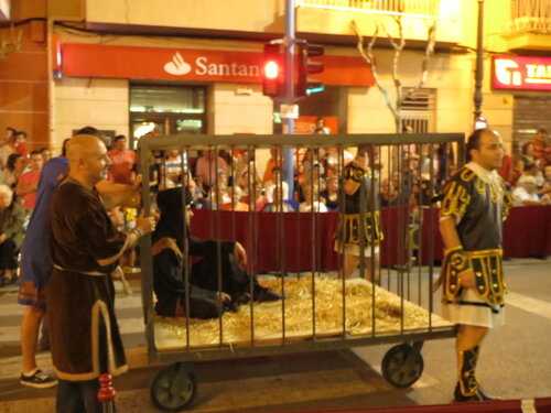 Все идут — танцуют, вот христиане повели мавров, вот мавры ведут христиан, вот повели живого тигра, вот едет натуральный лес, вот едут король с королевой, а рядом играют их дети, все это под музыку, все с огнями, грандиозными костюмами, все кричат и хлопают.