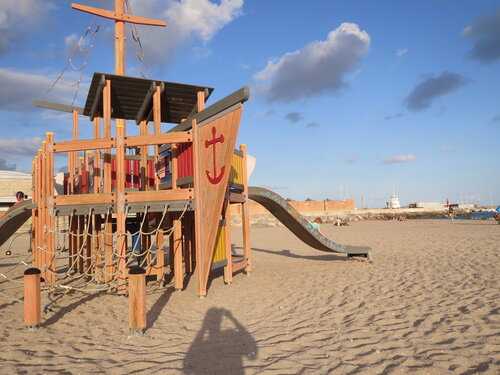 Детских площадок по городу хватает, есть около некоторых крупных магазинов, встречаются на пляже, в парке и скверах. Некоторые из них:
