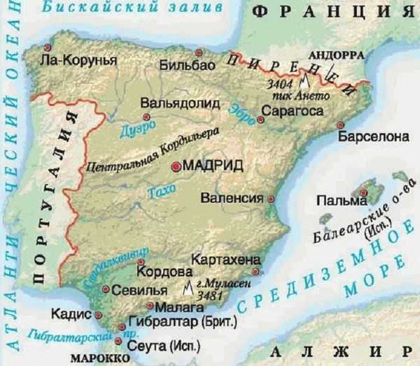 Карты Испании | Подробная карта Испании на русском языке с городами и курортами