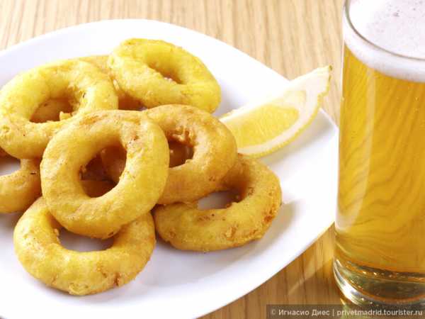 Кольца кальмаров жареные во фритюре и пиво с лимоном