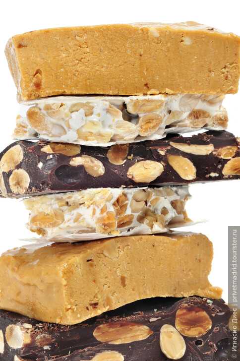 ТурронИспанцы съедают огромное количество туррона, или миндальной нуги. Обычно эту сладость едят на Рождество, хотя она продается круглый год. Подавляющее количество нуги изготавливают в небольшом городке Хихон в провинции Аликанте. Именно здесь местный миндаль смешивают с медом и яичным белком. Существует два основных типа нуги – мягкая и почти твердая. Последняя такая потому, что содержит кусочки миндаля.