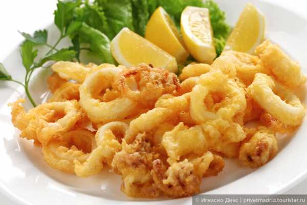 Кольца кальмаров жареные во фритюре с лимоном