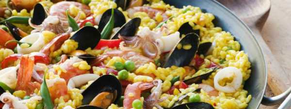 Паэлья — испанское блюдо из риса, подкрашенное шафраном, с добавлением оливкового масла, морепродуктов или мяса. Родина паэльи — Валенсия.