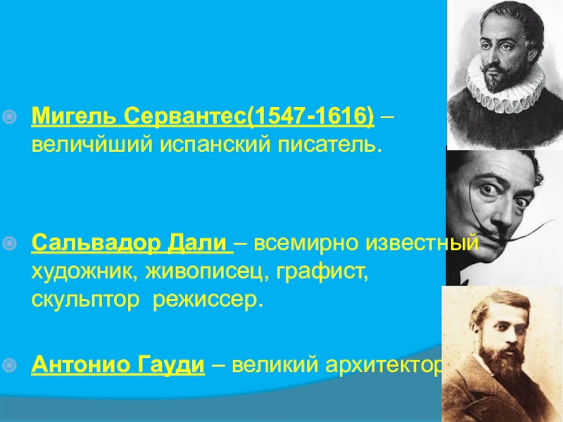 Испания представлена в мировой культуре тремя вечными образами. Речь идет о Дон Кихоте, Дон Хуане (чаще используется «офранцуженный» вариант – Дон Жуан) и Зорро.