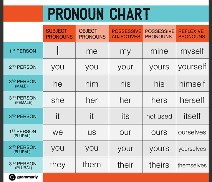 Личные местоимения определяют участников обсуждения. Используйте первое лицо, чтобы обратиться к говорящему, второе лицо к слушателю и третье лицо к кому-то вне разговора.