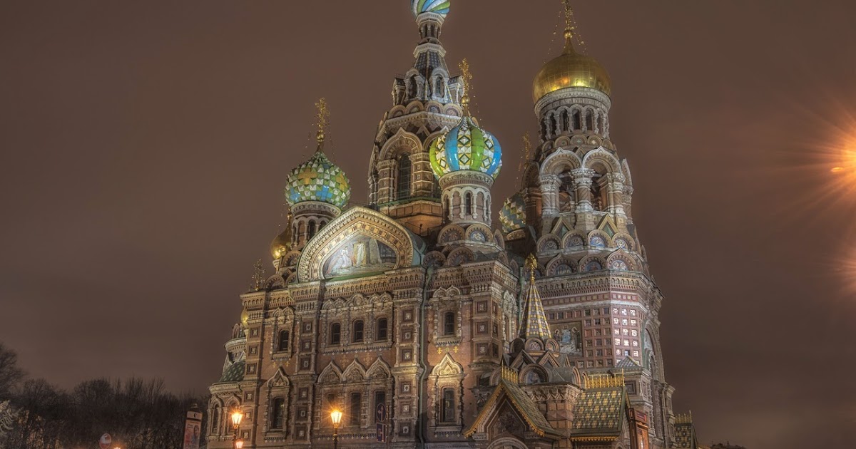 Храм Спаса-на-Крови с разноцветными луковичными куполами, напоминающими собор Василия Блаженного в Москве, представляет собой захватывающее дух зрелище как снаружи, так и внутри богато украшенных стен.