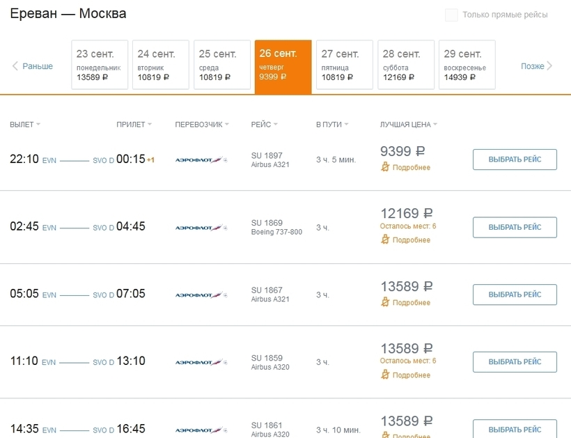 | Aeroflot | PriceFrom $762 | Free Cancellation | Rating 6. | 7.2 Boarding 7.0 Comfort 7.5 Crew 6.4 Entertainment 6.3 Food 1 / 10 Если бы был вегетарианский или халяльный вариант, было бы отлично | Поиск рейсов Аэрофлота |