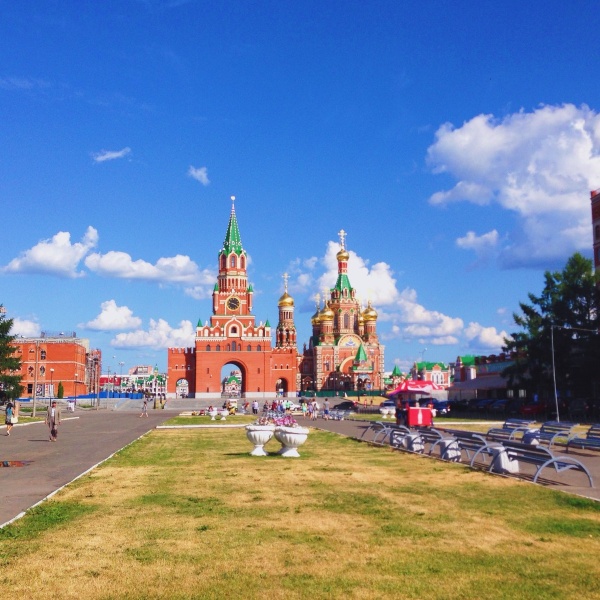 Сюжеты Благовещенская башня на площади Пресвятой Богородицы в Йошкар-Оле.