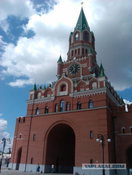 Кремль, Троицкая башня Кремль, Красная площадь, Троицкая башня, люди, деревья, облака, timelapse
