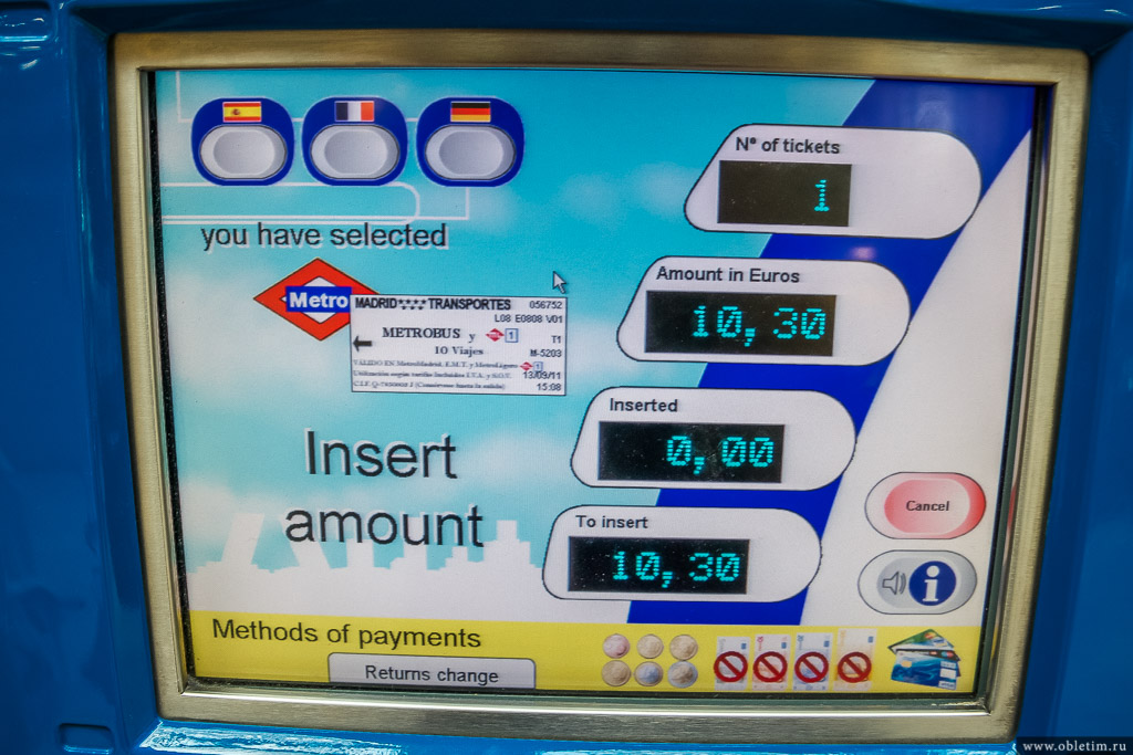 Стоимость проезда в автоэкспрессе – 5 евро, а в пути до центра Мадрида автобусы находятся менее часа – от 40 до 50 минут.