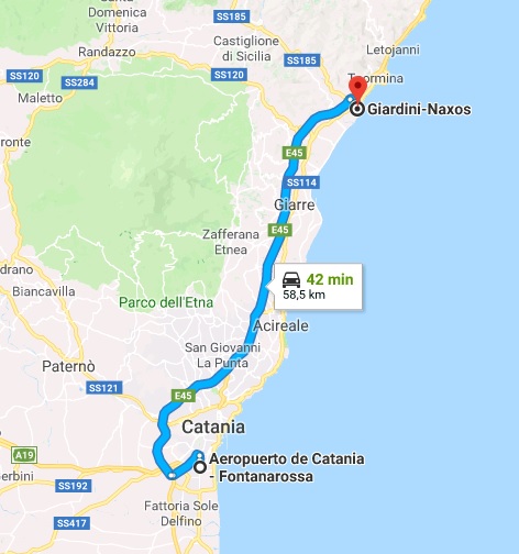 Полеты осуществляются несколько раз в день из аэропорта Палермо (Aeroporto di Palermo) в аэропорт Катании (Aeroporto di Catania Fontanarossa) с пересадкой в Риме в аэропорту Фьюмичино.