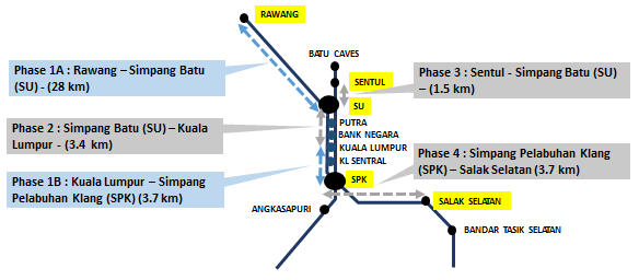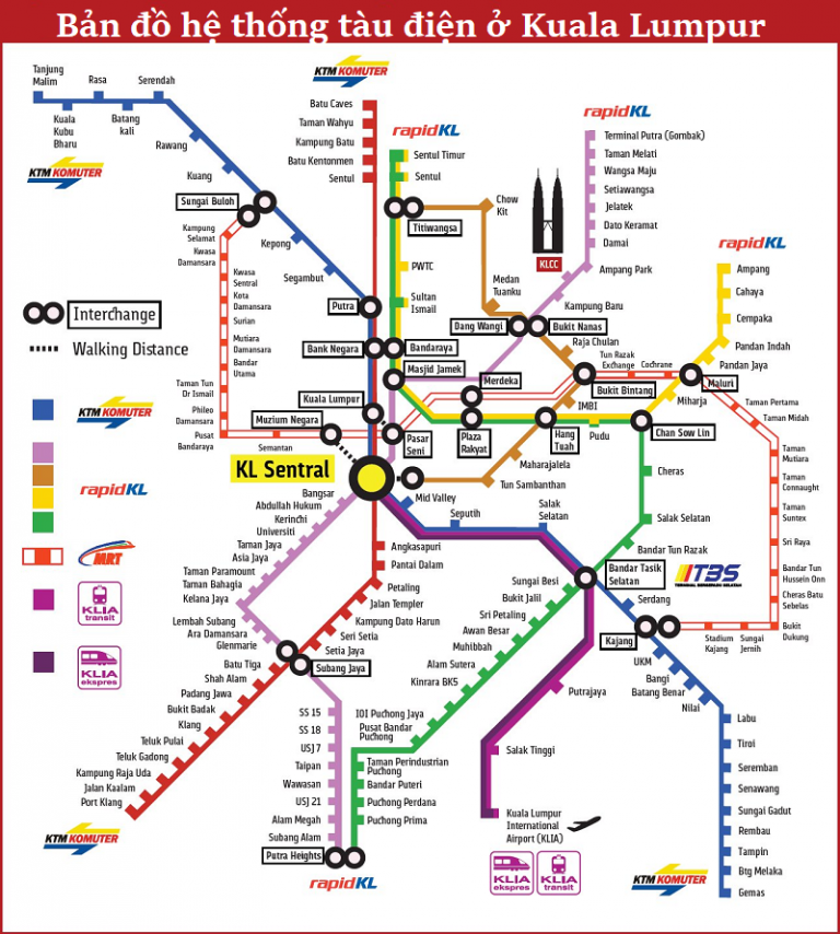 Интервал движения экспресса 15-20 минут. Поезда этой линии начинают движения в 5 утра от центрального вокзала и в 4:55 от станции аэропорта. Последний рейс отбывает в 00:40 и 00:55 соответственно. - Вторая линия KLIA Transit – пригородная служба. Поезда этого маршрута делают три остановки на станциях Бандар Тасик Селатан, Путраджайя Централ и Салак Тинги, которые находятся в пригородной зоне Куала-Лумпура. Длительность поездки 35 минут, цена билета – 35 ринггит. Интервал движения данной линии 20-30 минут. Поезда этой ветки начинают курсировать в 4:33 от центрального вокзала и в 5:48 от аэропорта. Последние рейсы – 00:03 и 00:59 соответственно. На официальном сайте скоростной железной дороги указано подробное расписание, а также дополнительные рейсы поездов в часы пик.