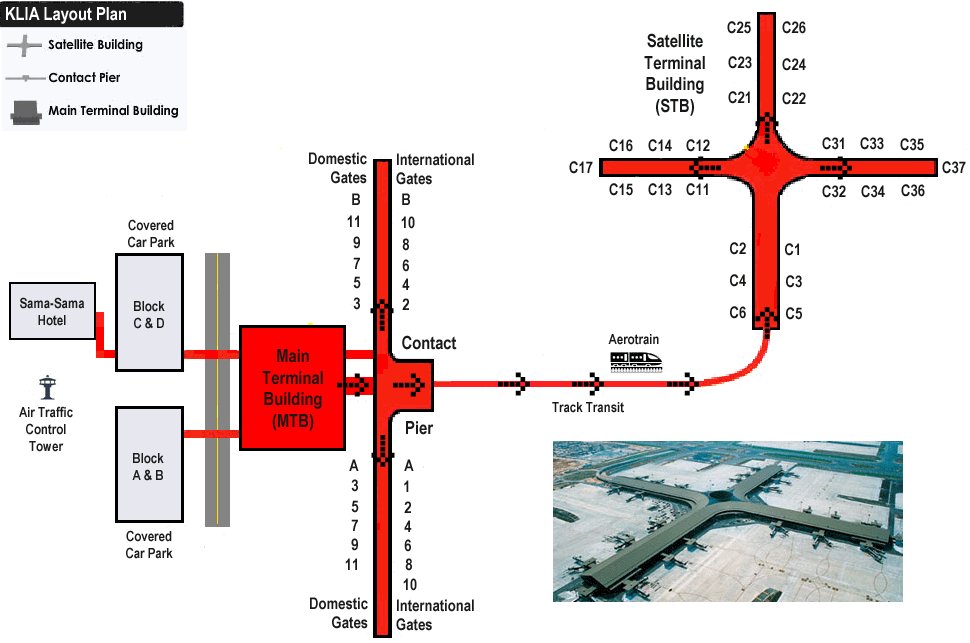 Кроме того, взглянув на схему Международного аэропорта Куала-Лумпур, можно сказать, что это своеобразный «город в городе».
