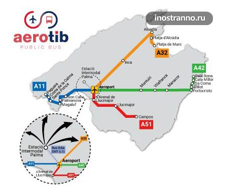 Номера и маршруты автобусов из/в аэропорта Майорки
