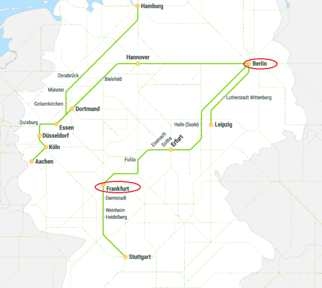 Обычно каждый будний день на маршруте из Берлина в Гамбург курсирует около 63 прямых поездов.