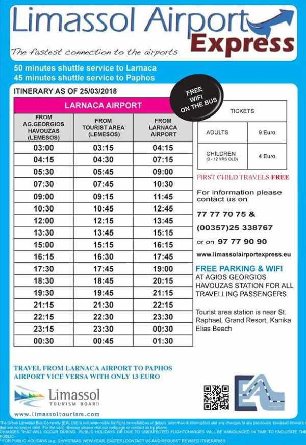 Автобус ходит ежедневно, часы отправления из аэропорта в Лимассол: