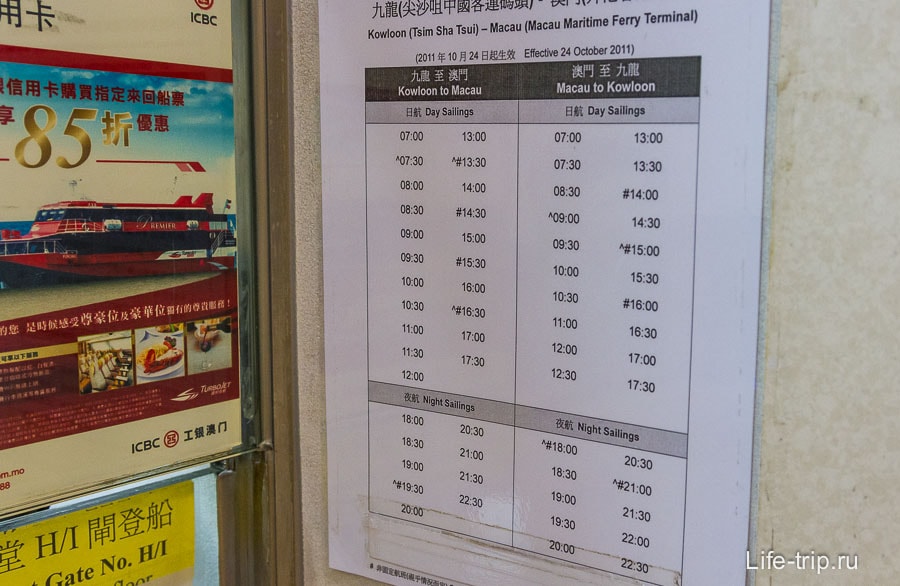 Многие люди совершают однодневные поездки в Макао, поэтому билеты быстро раскупаются, особенно по выходным, поэтому лучше покупать обратный билет из Гонконга. Не ждите до вечера в Макао, чтобы получить его, потому что есть вероятность, что они будут распроданы из билетов эконом-класса.