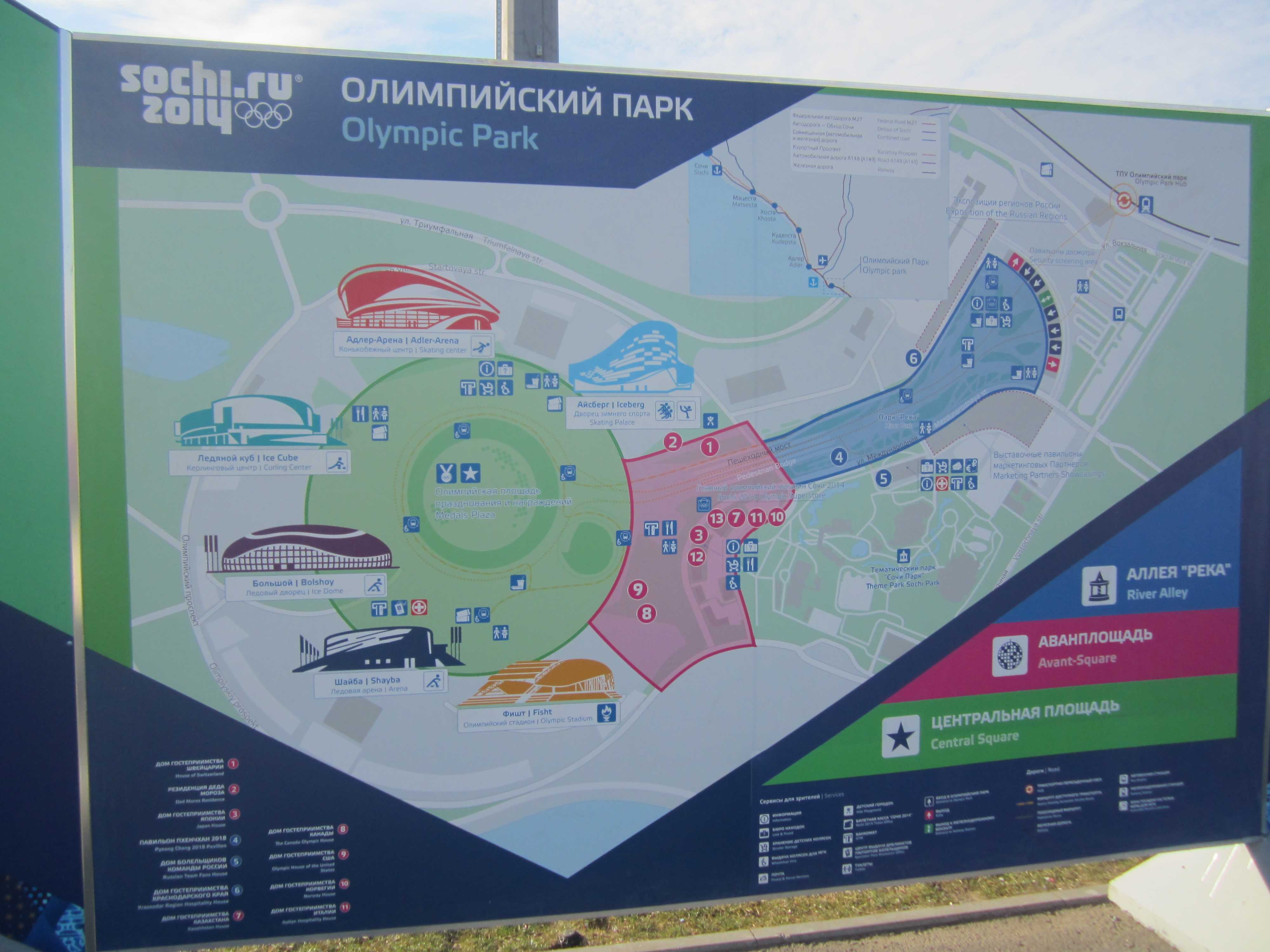 Олимпийский парк занимает площадь 200 га. Теперь это огромная безлюдная территория с футуристическими ледяными аренами, белыми на фоне гор, которые можно посетить только во время каких-то концертов или спортивных мероприятий. К сожалению, после того, как фейерверк зимних Олимпийских игр 2014 года утих, роскошные спортивные сооружения либо остаются пустыми большую часть времени, либо были перепроектированы для других нужд, так как очень мало мероприятий, сопоставимых по масштабу с Олимпийскими играми.