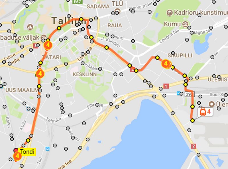 - Маршрут. С помощью линии № 2 или № 4 можно доехать к главному автовокзалу — остановка Bussijaam, а также железнодорожному вокзалу – остановка Balti jaam.
