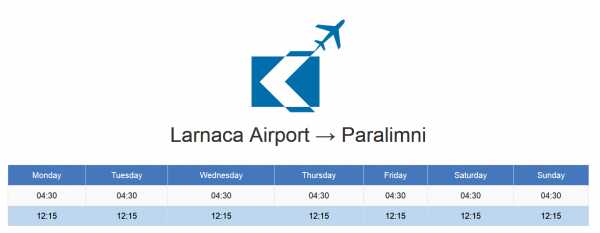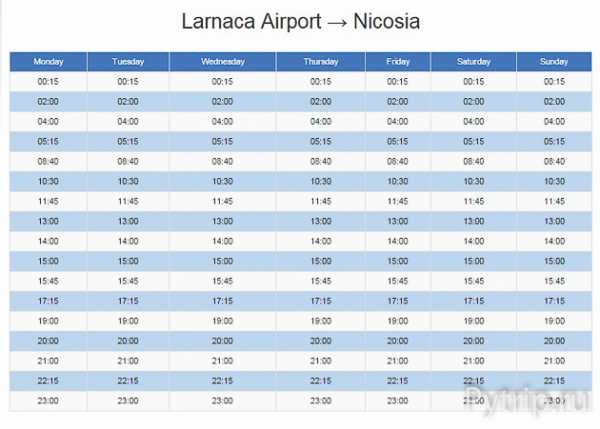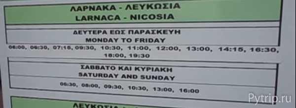- Частота рейсов: рейсы из Ларнаки в зимнее время стартуют 10 раз в день в будние (6.00-20.45) и 6 раз в день в выходные (7.00-17.30). В летний период автобусы ходят 13 раз в день в будние (6.00-20.30) и 10 раз в день в выходные (6.00-20.30).