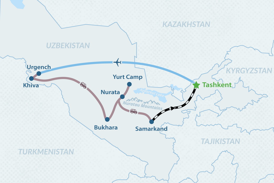 Вы можете сесть на прямой спальный поезд до Ташкента (14 часов из Ургенча) или сесть на самолет (1 час).